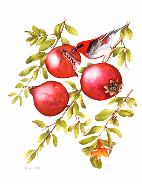 Pomegranate with Scarlet Honey eater