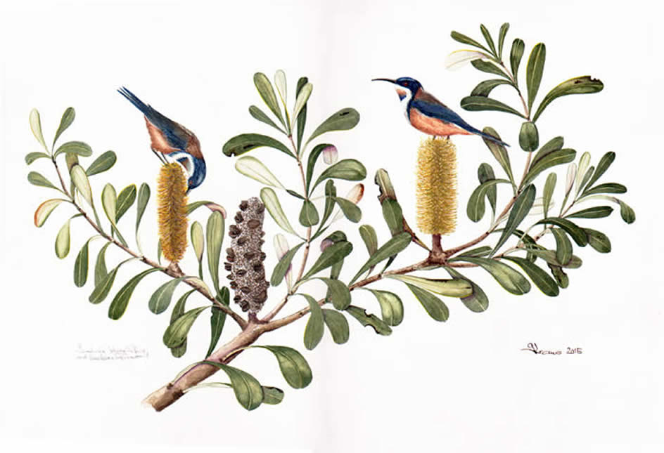 Banksia integrifolia with Eastern Spinebill